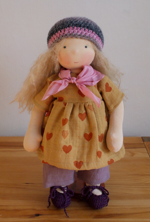 Eine Puppe wie diese könnt ihr mit meinen E-Books zur Herstellung von Puppen und Puppenkleidern auch selbst herstellen. Mehr dazu hier. Die E-Books sind in meinem Etsy-Shop erhältlich.
