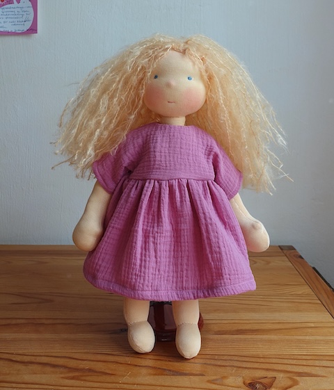 Die Puppe ist für 215 Euro meinem Etsy-Shop oder via eMail an hello@mariengold.net direkt bei mir erhältlich.