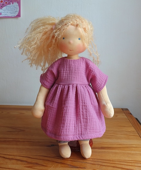 Eine Puppe wie diese könnt ihr mit meinen Books zur Herstellung von Puppen und Puppenkleidern auch selbst herstellen. Mehr dazu hier. Die eBooks sind in meinem Etsy-Shop erhältlich.