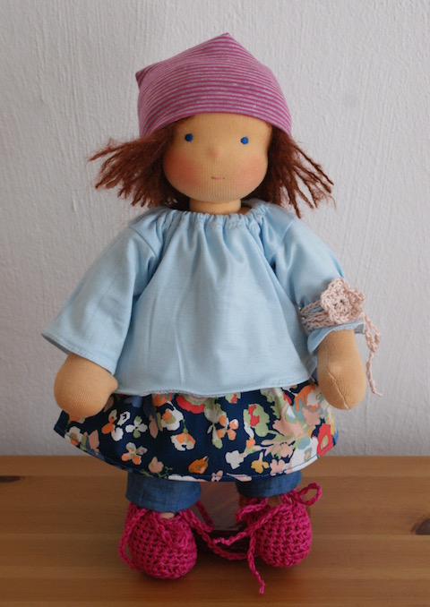 Eine Puppe wie diese könnt ihr mit meinen E-Books zur Herstellung von Puppen und Puppenkleidern auch selbst herstellen. Mehr dazu hier. Die E-Books sind in meinen Webshops bei Dawanda und Etsy erhältlich.