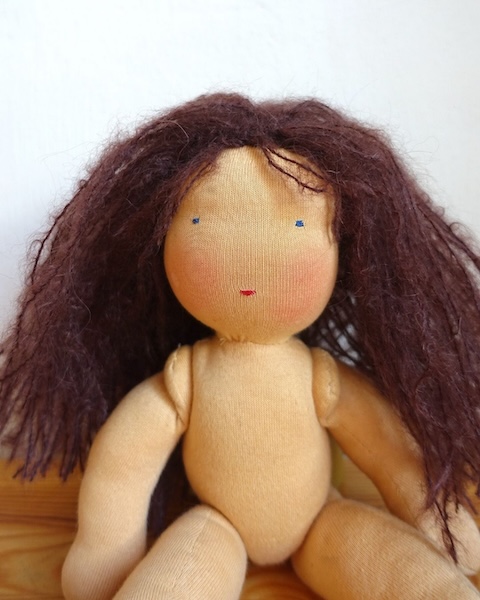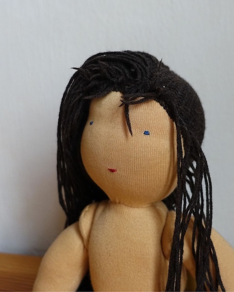 Nach der Nase sind die Haare meiner Erfahrung nach der zweithäufigste Grund für Puppenreparaturen. Je nach Spiel- und Kuschelintensität können sie mit der Zeit dünn werden, verfilzen und ausfallen. Das ist ganz normal bei textilen Materialien und kein Zeichen von mangelhafter Anfertigung oder unpfleglichem Umgang. Im Gegenteil: Meine 20-jährige Expertise hat mich gelehrt, dass man es Puppen eben ansieht, wenn sie bespielt und geliebt werden, und das ist vollkommen in Ordnung. Die gute Nachricht: Was von Hand erschaffen wurde, kann auch von Hand repariert werden.