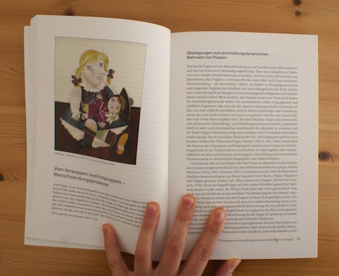 Das Buch von Insa Fooken dagegen eröffnet einen vielseitigen Einblick in das Phänomen Puppe, beantwortet viele Fragen, die im Laufe meiner Tätigkeit als Puppenmacherin aufgetaucht sind, und macht Lust und neugierig, zu bestimmten Aspekten selbst weiter zu forschen und zu lesen. Auch schätze ich sehr die umfangreiche Literaturliste, die Bilder von Menschen und Puppen aus Fotografie und Malerei und die vielen Hinweise auf Puppen in der Literatur.