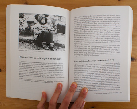 Es war eine aufmerksame Blogleserin, die mich auf das Buch „Puppen – Heimliche Menschenflüsterer“ von Insa Fooken aufmerksam machte, das heute zu meinen Lieblingen zählt und seitdem meine Arbeit inspiriert. Die Autorin ist Professorin für Psychologie an der Universität Siegen, ihre Arbeit an dem Buch wurde von der Stiftung „Chancen für Kinder durch Spielen“ unterstützt, die sich der Bedeutung von Puppen, Teddies und Kuscheltieren für Kinder widmet.