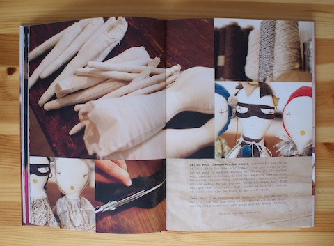 Auf den ersten Blick sehen sie ganz einfach aus. Sie werden aus nur wenigen Materialien, mit simplen Techniken und ohne viel Zeitaufwand angefertigt. Dafür braucht man kein perfektes Händchen, sondern das gelingt auch ohne Vorkenntnisse und besonderes Geschick. Diese Schlichtheit aber dient der Designerin als Spielfläche, um in den Details aus jeder einzelnen Puppe eine eigene kleine Persönlichkeit zu machen. Mit einfachen Mitteln – mal ist es ein antiker Leinenstoff mit einer besonderen Struktur für den Körper, mal ein Malerhut aus Zeitungspapier oder Haar aus fuchsrotem Kaschmirstrick – erschafft sie individuelle Charaktere, die zu entdecken – und ganz bestimmt auch mit denen zu spielen – viel Freude macht.