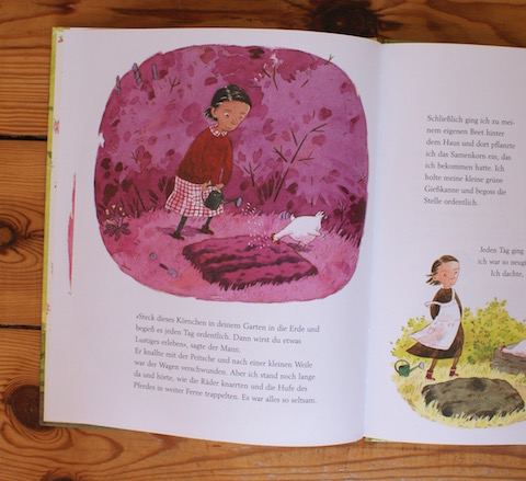 Bemerkenswert sind auch die Illustrationen von Pija Lindenbaum, einer der beliebtesten Bilderbuch-Künstlerinnen Schwedens. Ihre Bilder sind wunderbar schnörkellos und eigensinnig, mit satten Farben und einem verrückten Huhn, das auf jeder Seite dabei ist.