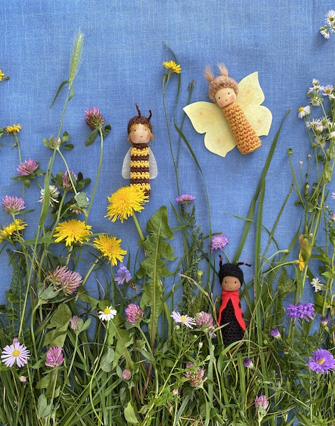 Ich arbeite grundsätzlich gerne mit meinen Händen. Beim Puppenmachen liebe ich es ganz besonders, wie ein kleines Wesen in meinen Händen entsteht, mich am Ende anblickt und zu sagen scheint: „Hallo, hier bin ich!“ Vor einigen Jahren entwickelte ich dann für unsere Familie die ersten Fingerpuppen und blieb an dieser Arbeit hängen. Ich mag es, dass sie so schnell gemacht sind und trotzdem so facettenreich ausgearbeitet werden können. Außerdem bin ich dabei ortsunabhängig, denn ich mache sie einfach überall – auf dem Spielplatz, auf dem Sofa, im Garten oder auch mal während einer längeren Zugfahrt.