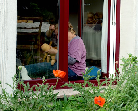 Oft sind es kleine, unspektakuläre Momente, die uns klar machen: wir verstehen uns, wir sind uns nah. Das kann ein sprudelndes Gespräch über Puppen und Macherinnen sein, das kein Außenstehender verstehen würde. Die Freude am Teilen. Die Geduld, mit der eine Teilnehmerin einer anderen stundenlang beim Häkeln ihres Haarkäppchens zur Seite steht. Das Lachen, das schon am ersten Abend aus einem Zimmer tönt, in dem sich vorher keiner kannte. Das offene Ohr in der Kaffeepause. Ein liebevolles Lächeln über den Tisch. Die einvernehmliche Stille bei besonders kniffligen Arbeitsschritten. Die Fürsorge, mit der ein großer Teller für eine Teilnehmerin gefüllt und beiseite gestellt wird, die nicht am Mittagessen teilnehmen kann. Die Ernsthaftigkeit, mit der über kleinste Details gesprochen wird. Das Entzücken über die Puppe der Nachbarin. Stolz auf der eigenen Hände Arbeit, der mit einem freundschaftlichen Schulterklopfen verstärkt wird. Das Vergnügen, Teil einer Art Geheimloge zu sein, von der der Rest der Welt nichts ahnt. Die Frage an die Gastgeberin, ob man Samen von dem klatschroten Mohn bekommen könne, der direkt vor unserem Seminarraum blüht. Die Stimmung, die weiter steigt, wenn es tatsächlich Rhabarberkuchen gibt. Der Rührungs-Kloß im Hals, der nicht heruntergeschluckt, sondern zu Herzensworten ausgesprochen wird. Die feste Umarmung beim Abschied.