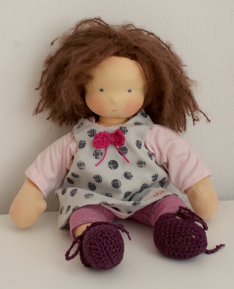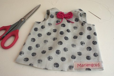 Eigentlich habe ich es nicht so mit Rüschen und Knöpfen, Bommeln und Litzen und all dem herrlichen Kleinkram, mit dem man Puppenkleidung verzieren kann. Ich mag es schlicht und einfach. Weil ich das am besten kann und weil es mehr meist gar nicht braucht.
