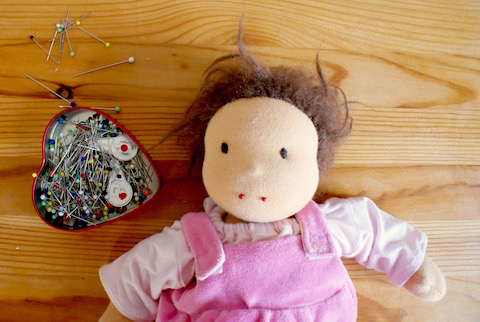 Zum Glück kann eine handgemachte Puppe in der Regel auch mit wenigen Handgriffen wieder in Ordnung gebracht werden. So eine Erneuerung des Mundes ist leichter als gedacht und dauert keine 20 Minuten. Dafür braucht man keine Unterstützung vom Profi und auch kein umständliches Entfernen des Haarkäppchens, sondern nur ein bisschen Mut und eine entschlossene Gut-genug-Haltung.