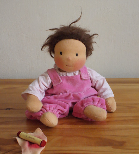 Und wenn ihr schon dabei seid, könntet ihr gleich noch das Wangenrot auffrischen (z. B. damit) und mit dem „Fingerkamm“ durch die Haare gehen, eure Liebe mit einem Kuss besiegeln und die Puppe wieder in ihr wildes Puppenleben entlassen.