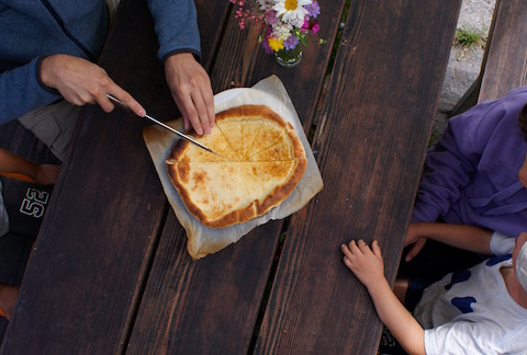 Das beste Heidelbeerjahr. Ringelblumengold am Wegrand. Hände im Hefeteig. Eine kleine, aber treue Regenwolke, die sich beim Wandern an unsere Fersen heftete. Gewitternächte. Das schönste „Wish you were here“ in eben einer solchen stürmischen Gewitternacht, alle zusammen, zwei mit Gitarre und dem Geschenk, für uns zu singen. Kleine weiße Sonnencremesprenkel auf der Haut. Ziegenalproutine Tag für Tag. Eselohrwackeln. Gâteau à la Crème für mich zum Geburtstag. Und Lieblingsheidelbeerpfannkuchen zum Frühstück. Alte Freunde wiedersehen, neue Freunde finden. Einen leichten Kopf haben. Der Duft von frisch gebackenem Brot. Heidelbeerporridge, wenn der Bauch sich morgens nach etwas Warmen sehnte. Sechs Glückshäubchen stricken und zwei davon am Berg lassen. Pizza aus dem Holzbackofen. Milch holen beim Bauern auf der Nachbaralp. In Büchern versinken, die Beine unter dem Rock gekreuzt. Waldhimbeeren. Goldmelissentee. Stille, endlose, weite Stille. Schreiben. Heidelbeerpflückverfärbte Hände. Rabenlaute. Sich frei laufen, laufen und immer weiter laufen. Den Wolken ganz nah. Glückstränen, Trauertränen. Die Sonne von morgens bis nachmittags immer heißer werden spüren. Nachts das Licht bei Fastvollmond. Ein grandioser Sternenhimmel, wie es ihn nur in den Bergen gibt. Die wichtigen Dinge ganz nah am Herzen. Alles andere sein lassen.
