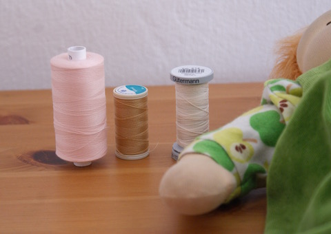 Ihr braucht eine spitze Sticknadel und Nähgarn in der Farbe des Trikotstoffes oder etwas heller oder dunkler wie bei Käthe, meinem Modell, die mir meine Leserin und Kundin Bianca dankenswerterweise für diese Geschichte zur Verfügung gestellt hat. Etwas dicker und reißfest sollte es sein, etwa wie das Knopflochgarn oder Extra Stark von Gütermann.