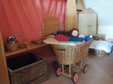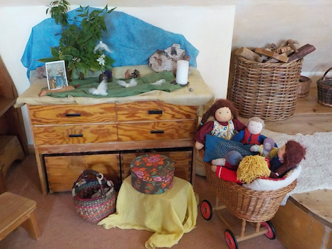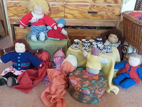 Das Spiel mit der Puppe ist wesentlicher Teil der sinnlichen Umgebung im Waldorfkindergarten. Die Puppenecke braucht Pflege und sie strahlt in den Raum aus. Es ist sogar so, dass vergessene Puppen im Kindergarten auch atmosphärisch verraten, wie es den Menschen dort gerade geht. Wenn sie Heilung brauchen, dann kann sie auch aus der Puppenecke kommen.