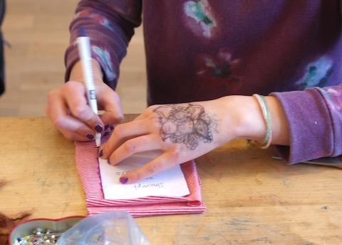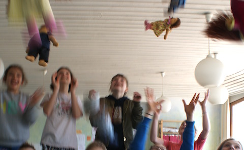 Manchmal besuchten uns auch andere Kinder aus der Klasse. Mein Eindruck war, dass sie neugierig auf die AG waren und den Freundinnen und Freunden nur allzu gern bei der Puppenmacherei zur Hand gingen.