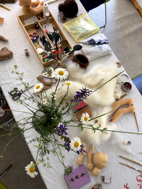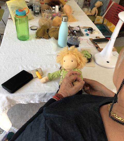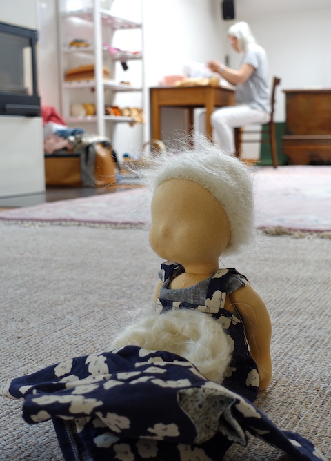 Diese Magie zog sich durch den gesamten Workshop. Alles war leicht und weich und verbunden und so ganz anders als die Wochen und Monate zuvor, in denen ich mich oft gefragt hatte, ob die Menschen überhaupt noch Puppen und Räume zum Puppenmachen brauchten und wünschten. Die Nachfrage nach beidem mag zwar gesunken sein und es mag auch noch dauern, bis wieder bessere Zeiten für kleine Kreativ-Labels kommen, aber diese vier Tage haben mir gezeigt, dass ich selbst entscheiden darf, worauf ich mich konzentriere: darauf, was gerade alles nicht geht, oder auf das, was da ist.