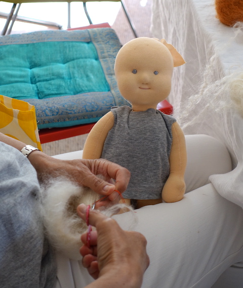 Von dem Moment an, als die Gruppe das erste Mal zusammenkam und wir Herzen für die Puppen filzten, war ein Zauber zu spüren, eine Offenheit und ein Miteinander-Fließen, dass es die reine Freude war, jede Einzelne in ihrem Sein zu entdecken und im gleichen Maße zu spüren, wie über die Hinwendung zum gemeinsamen Tun und Erleben in kürzester Zeit eine wunderbare Gemeinschaft entstand. So etwas lässt sich nicht planen oder bewusst herstellen, sondern es ist immer etwas Magisches beteiligt, eine höhere Macht, ein guter Geist, nennt es, wie ihr wollt.
