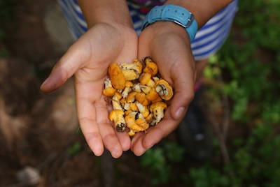 Meine Pilgerwege führten mich geradewegs in die Heidelbeeren. In der Nacht vor meinem Geburtstag gab es einen irren Regen (wie so oft in diesem Urlaub). Als am späten Mittag die letzten Tropfen versiegt waren, schlüpfte ich in Regenmantel und Gummistiefel und machte mich auf in den Wald, wo mich die Beeren überall blau und prall anstrahlten. Beim Pflücken vergaß ich immer vollkommen die Zeit. Wenn ich dann nach Stunden wieder auftauchte, fühlte ich mich erfrischt und munter.