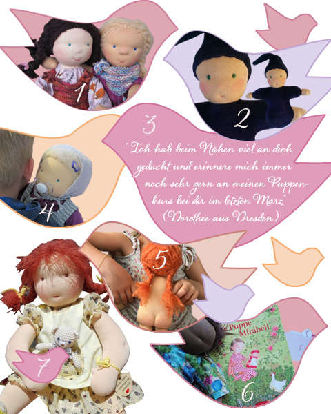 3 Regelmäßig bekomme ich meterlange E-Mails von Kursteilnehmerinnen und Kundinnen, die von ihren Puppennähabenteuern berichten. Wie von Dorothee aus Dresden, die Mama von Zwillingen ist und entsprechend doppelt Freude am Puppenmachen hat.