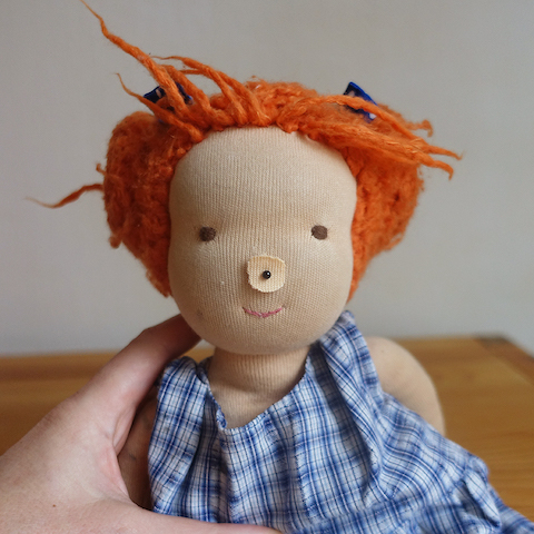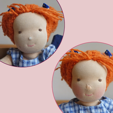 Premiere hatte dieser Puppentyp bereits 2022, als ich mit der Ur-Melisse an der Instagram-Initiative #dollforukraine teilnahm, einer Versteigerungsaktion für handgemachte Puppen zugunsten der humanitären Hilfe für die vom Krieg betroffenen Menschen in der Ukraine. Melisse kam damals sehr gut an und wurde immer wieder nachgefragt und so entstand die Idee für eine Kollektion von strahlenden Heilungspuppen, die ich dieses Jahr um einen Jungen ergänzt habe.