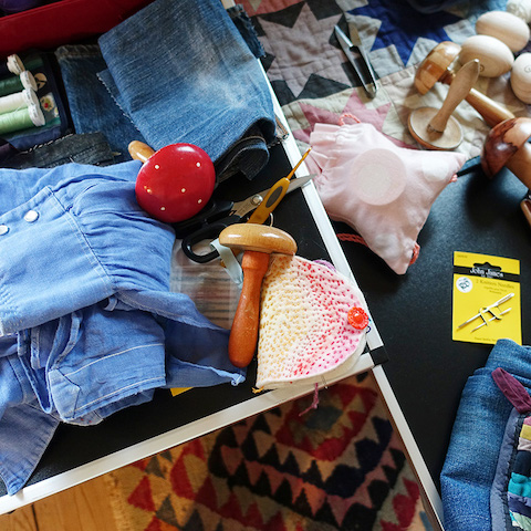 Eigentlich ist es nicht unbedingt meine Art, Kleidung auszubessern. Bis ich vor einem Jahr für unsere Podcast-Episode „Neues Leben für die Puppen“ tief in das Thema Reparieren eintauchte und sich mir über die Puppen hinaus eine neue Welt öffnete. Ich las Bücher, lernte über Techniken, Material und Hintergründe, nahm an Online-Kursen teil, entdeckte eine faszinierende Bubble bei Instagram, staunte über Meisterinnen ihres Fachs, arbeitete mich ein und deckte mich ein mit Werkzeugen und Utensilien, von denen ein kleines honigduftendes, gelbes Blöckchen Schneiderwachs mein liebstes ist.