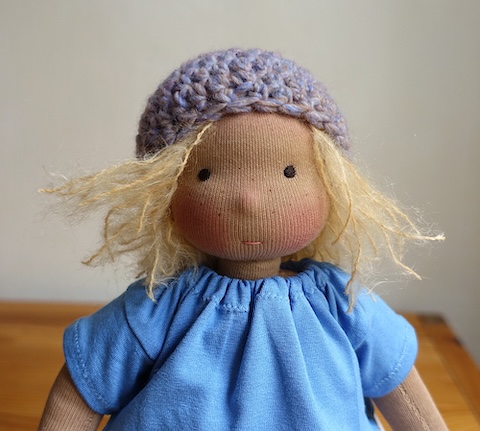 Eine Puppe wie diese könnt ihr mit meinen Books zur Herstellung von Puppen und Puppenkleidern auch selbst herstellen. Mehr dazu hier. Die eBooks sind in meinem Etsy-Shop erhältlich.
