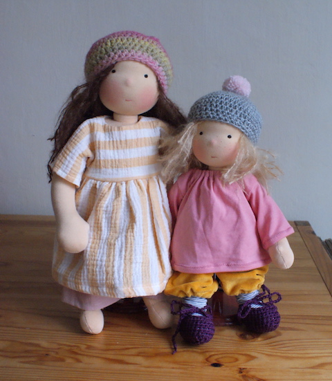 Ende November traute ich meinen Augen kaum, als eine Bestellung von Annika reinkam, der Freundin, mit der ich vor genau 16 Jahren meine allererste Puppe gemacht habe. Nachdem sie aus Berlin weggezogen war – da waren unsere Mädchen zwei oder drei Jahre alt -, verloren wir uns schnell aus den Augen und hörten über zehn Jahre nichts voneinander. War das eine Freude, sich gegenseitig auf den neuesten Stand zu bringen, Bilder auszutauschen – und zu spüren, dass uns das Puppenmachen noch immer verbindet.