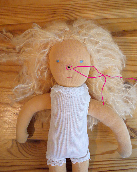 Erst zuckte ich ein wenig zusammen und dann freute ich mich, als mich die Verkäuferin im Kunstgewerbehaus Zehlendorf ansprach: „Du bist doch die Puppenmacherin.“ Sie hätte schon mehrere Puppen nach meiner Anleitung genäht und wolle sich jetzt an einem Filzkopf versuchen.
