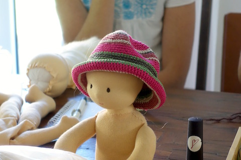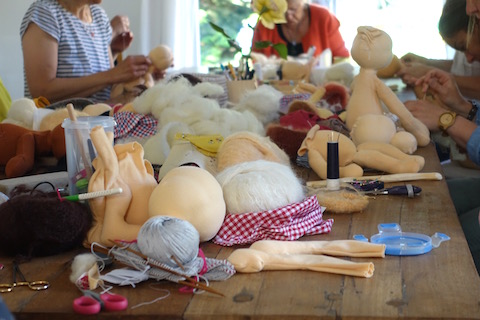 Die Landpartie hat auch mich als Workshopleiterin erfrischt und inspiriert. Bis obenhin bin ich jetzt mit Puppenliebe angefüllt, vor allem aber mit Liebe für die Begegnung mit Menschen, die den Mut haben, sich im Herzen berühren zu lassen. Einmal mehr habe ich verstanden, dass genau das der Grund ist, warum ich Puppen nähe: um mich darüber mit den Menschen zu verbinden, mit meinen Kursteilnehmerinnen, Kundinnen und Kunden, Leserinnen und Lesern, Laura und meinen puppenmachenden und auch nichtmachenden Freundinnen und Freunden und allen, die Puppen und Puppenmacherei genauso lieben wie ich.