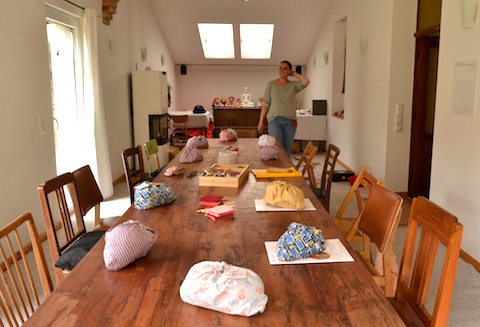 „Ihr beide seht so richtig schön entspannt aus“, bemerkte Anne am letzten Abend unserer Landpartie für Puppennähverliebte. Und das waren wir auch, Laura und ich, entspannt und glücklich nebeneinander auf der kleinen Hollywoodschaukel im wildschönen Garten des Refugiums Hoher Fläming, wo wir vier Tage lang ein Puppennähfest veranstaltet hatten. Die Sonne ging langsam unter, in der Luft der Duft von Holunderblüten, vor uns ein Tisch mit Wein und Knabberei (und natürlich ganz viel Handarbeitszeug) und drumherum unsere zehn Teilnehmerinnen, die uns so sehr ans Herz gewachsen waren, dass es unvorstellbar erschien, dass wir uns morgen in alle vier Himmelsrichtungen verabschieden würden.