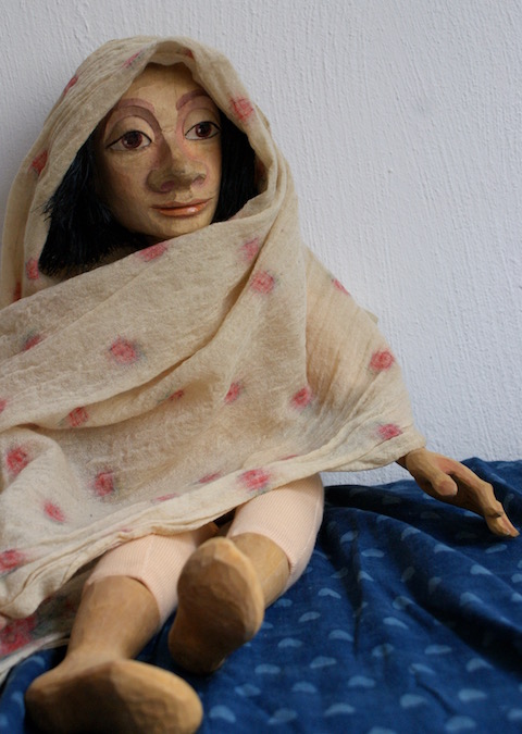 Seit unserem letzten Treffen sind einige Wochen vergangen und mein Holzköpfchen hat immer noch nichts anzuziehen. Ich muss nämlich zugeben, dass ich lange Zeit stecken geblieben war und überhaupt nicht wusste, wie es mit der Puppe weitergehen soll. Ich habe sogar darüber nachgedacht, alles rückgängig zu machen und nur den kahlen Kopf, wie er es jahrelang war, als Erinnerung an diese kleine Episode in meinem Puppenmacherinnenleben aufzubewahren. Nach meiner Rückkehr aus der Steiermark war aber alles klar und ich sah, was ich vorher nicht so recht sehen konnte: dass sie wunderschön ist und ich sie unbedingt einkleiden möchte.