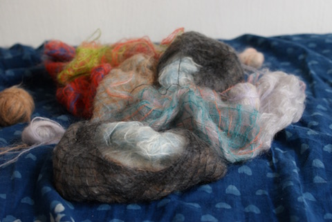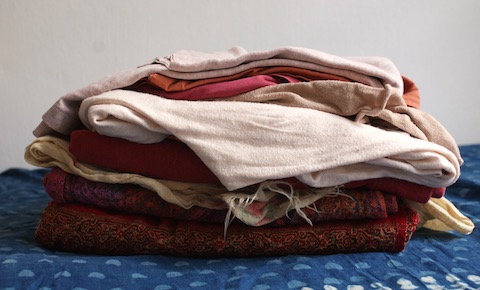 Mit den Jahren ist in meiner Werkstatt ein hübsch anzusehender Stapel mit abgelegten Kleidern von mir in meinen Lieblingsfarben zusammengekommen, die ich für etwas Besonderes aufbewahrt habe. Mein Holzköpfchen ist so jemand Besonderes und ich freue mich sehr darauf, in den nächsten Wochen bis zum letzten Treffen hier aus den Vollen schöpfen zu können und den alten Kleidern neues Leben zu schenken.