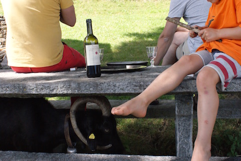 Trotz gedämpfter Grundstimmung hatte dieser Sommer seine Momente und zwar ganz schön viele: Frisch bezogene Betten bei der Ankunft. Ein Strauß Wiesenblumen auf dem wurmstichigen Tisch. Ein Willkommensbrief von Freunden aus Basel, die wir um einen halben Tag verpasst hatten. Der Duft von Holzasche. Wenn das Alphorn tönt. Kleidung tragen, die ich nur hier trage. Dass es an meinem Geburtstag Bindfäden regnete. Blaubeerpfannkuchen zum Frühstück. Blaubeerenblaue Finger. Mittagsschlaf bei Regengewitter. Eine bunt behangene Wäscheleine. Die sanfte Leichtigkeit am Abend nach einem besonders heißen Tag. Pizza aus dem Holzbackofen. Nussschnaps bei der Nachbarin. Fleur, unsere liebste Geiß, die schon genauso lange wie wir Sommer für Sommer auf den Berg kommt (zehn Jahre sind es jetzt). Ein Geburtstagsfeuerwerk (jedoch nicht für mich). Heidelbeeren mit Schlagsahne. Die Abende, an denen wir die Ziegen aus dem Stall führen durften. Und wie sie Morgen für Morgen und Abend für Abend eine nach der anderen den schmalen Pfad Richtung Wiese entlang trippeln. Ein unverhofft berührendes Stück auf der Gitarre. Das Kartenspiel lernen, mit dem sich die Jugendlichen die Zeit vertreiben. Ihr Lachen und ihre Musik durch das ganze Dorf hören. Katzenbabies! Auf den ersten Blick eine Sternschnuppe am Nachthimmel entdecken. Und am nächsten Abend ein einzelnes Glühwürmchen auf seinem Flug beobachten. Die Menschen hier, unsere Freunde. Lagerfeuer, ein Licht in der Dunkelheit und wissen: Alles ist gut.