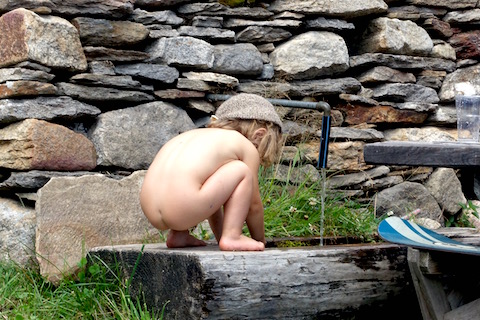 Tee aus frischer Bergpfefferminze, angenehm erquickend in dieser großen Hitze. Jedes Jahr etwas mehr Italienisch lernen. Alte Freunde wiedertreffen, neue Freunde finden. Zeit haben. Stundenlang der Mondfinsternis folgen. Das Dorf im Vollmondschein. Und jede Nacht der Mars am Himmel. Immer tiefer in die Geschichte dieses Ortes eintauchen. Überhaupt: In die Tiefe gehen. Heiße Tage, kühle Abende. Aufwachen nach einem Gewitter. Hühner, sie zu beobachten, mit ihnen zu leben, ist so unterhaltsam. Ein Büschel Gras in der Hand. Dass sie jeden Tag beim Melken geholfen hat (größter Ziegenfan seit acht Jahren). Regen, der aufs Blechdach prasselt (dieses Jahr ein seltenes Vergnügen). Ein plötzlicher Steinschlag ganz in der Nähe mit der Wucht eines Gewitterdonners, der durch Mark und Bein geht. Gemeinsam kochen und groß tafeln am Abend. Immer unter freiem Himmel. Wolkenlos. Das Alpenglühen am Schweizer Nationalfeiertag, als würde der Berg von innen her leuchten. Das Wetter so sonnig frohlockend, dass fast alle Bücher ungelesen bleiben. All die kleinen liebgewonnenen Besonderheiten (und auch Verrücktheiten) des Dorfes und seiner menschlichen und tierischen Bewohner. Der Duft von Brot, Pizza, Kuchen aus dem großen Holzofen. Geschenke aus dem Alpgarten (dieses Jahr waren die Bohnen und Erbsen sehr gut). Grashüpfer, die den Weg säumen. Der Geruch von Holzasche an kühlen Tagen. Mit der Zeit immer mehr Ziegen beim Namen kennen. Warmer Wind im Gesicht. Glühender Stillstand. Gold hinter den Augen. So viel Liebe in allen Dingen, in allem Tun. Pures Sein.