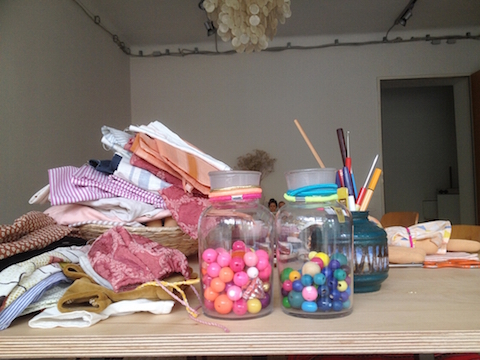Dass ich diese Gedanken mit unserem letzten Treffen verbinde, ist natürlich kein Zufall. Anita war wieder in der Stadt und wir haben endlich geschafft, was wir uns seit über einem Jahr vorgenommen hatten, nämlich Julia in ihrem Atelier in Karlshorst zu besuchen, für mich war es bereits das zweite Mal. Julia hat sich da einen herrlichen Ort für ihre Puppenmacherei geschaffen mit einem großen Tisch zum Werkeln und für Kurse, zwei Schaufenstern, die sie wunderschön dekoriert, einer kleinen Teeküche und einer ruhigen Ecke zum Rattern mit der Nähmaschine. Kurz: Raum, wie ich ihn mir selbst seit Jahren erträume. Ich freue mich wirklich von ganzem Herzen für Julia, natürlich auch über die Aussicht, jetzt öfter dort mit ihr zu sein, die Hände tanzen zu lassen, Tee zu trinken und zu plaudern. Aber es rührt mich noch auf eine andere Weise an, die viel tiefer geht und Licht auf einen Wunsch wirft, den ich lange im Dunkeln gehalten habe. Meinem Wunsch nach einem Arbeitsplatz außerhalb meiner Wohnung, nach Größe und Weite, nach ganz viel Raum für Ideen, Kreativität und Miteinander, auch nach Sichtbar-Sein in der Welt. Da geht es also lang, das ist meine große Sehnsucht und gleichzeitig meine große Angst. Diesen Wunsch einmal klar und liebevoll wahrzunehmen und auch anzunehmen, tut gut, dafür bin ich dankbar und das macht aus dem zwickenden Herzen wieder ein offenes Herz, das mit seiner unendlichen wundervollen wilden Weisheit verlässlich führt, wenn man es nur lässt.
