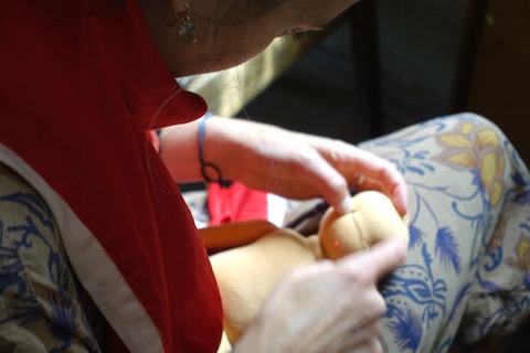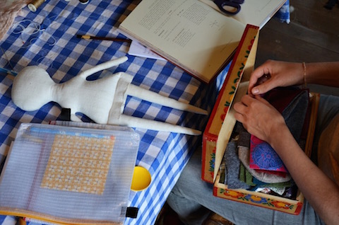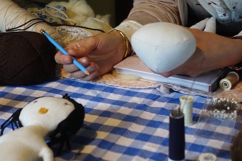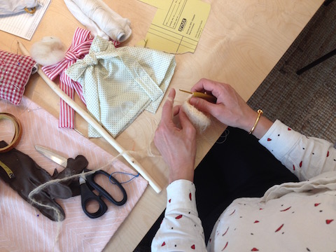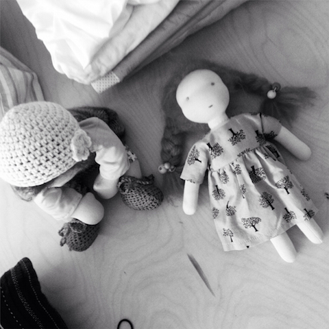 Wir hatten einen tollen Vormittag zusammen, haben wir immer geredet und geschmaust, ein bisschen gewerkelt und viel gelacht, Puppen gestreichelt und Entwürfe bestaunt, uns ausgetauscht und Pläne geschmiedet. So eine Gemeinschaft über die Jahre zu pflegen, ein Herzensding zu teilen und einander über einen längeren Zeitraum zu begleiten und zu erleben, ist etwas ganz Besonderes. Jedes Mal, wenn wir zusammensitzen, läuft mir das Herz vor Freude über und ich bin unheimlich glücklich über die Kontinuität unserer Verabredungen, auch wenn es manchmal gar nicht so leicht ist, die Gruppe zusammenzuhalten. Das Beste an einem Netzwerk ist, dass es sich unendlich ausdehnen kann und es immer besser wird, je mehr Menschen dabei sind. Und auch wenn wir bei unseren Treffen immer nur vier Frauen sind, spüre ich jedes Mal, dass wir in Wirklichkeit nicht nur acht Hände sind, sondern viel, viel mehr, mindestens doppelt so viele, wie es Puppennähverliebte auf dieser Welt gibt.
