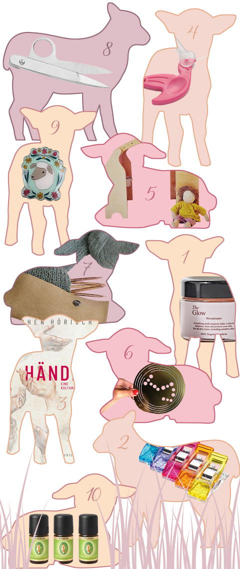 10 Wer Puppen näht, dessen Herz schlägt in der Regel auch für Schafe. Und dafür ist der Bloomy Sheep Pin von Wollen wie gemacht, Preis 10 Euro.