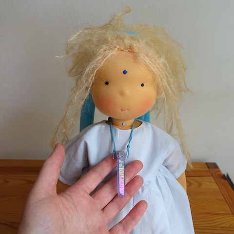 Jasrin und Malaika sind weniger als Spielpuppe für Kinder gedacht (wobei sie das auch sein könnten), sondern mehr als Begleitung für Erwachsene, z. B. für die spirituelle Praxis, für Energiearbeit, Heilung und Entwicklung.