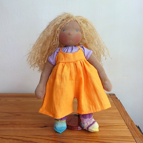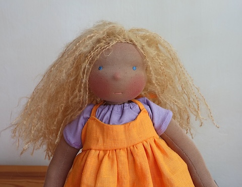 Die Puppe ist für 195 Euro meinem Etsy-Shop oder via eMail an hello@mariengold.net direkt bei mir erhältlich.