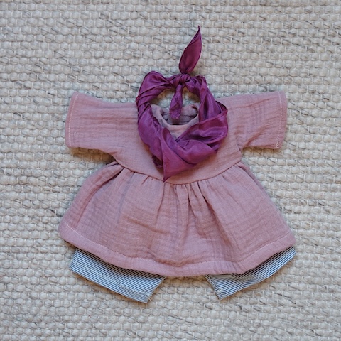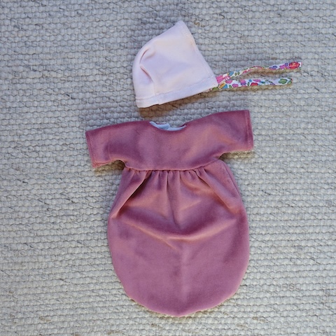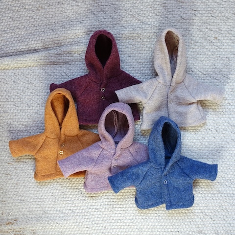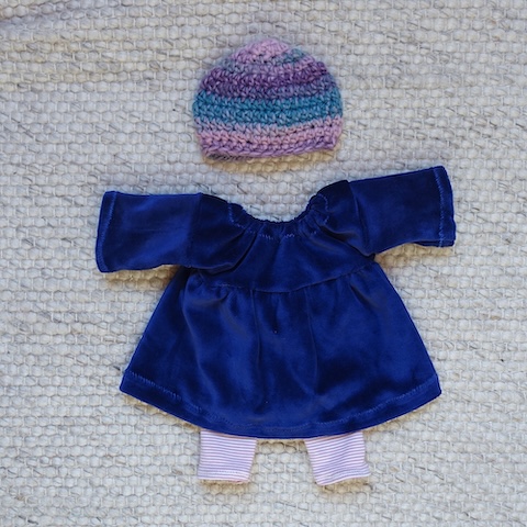 Die Kleidungsstücke sind den Mariengold Puppen auf den Leib geschneidert, passen aber auch anderen Puppen mit ähnlichen Maßen.